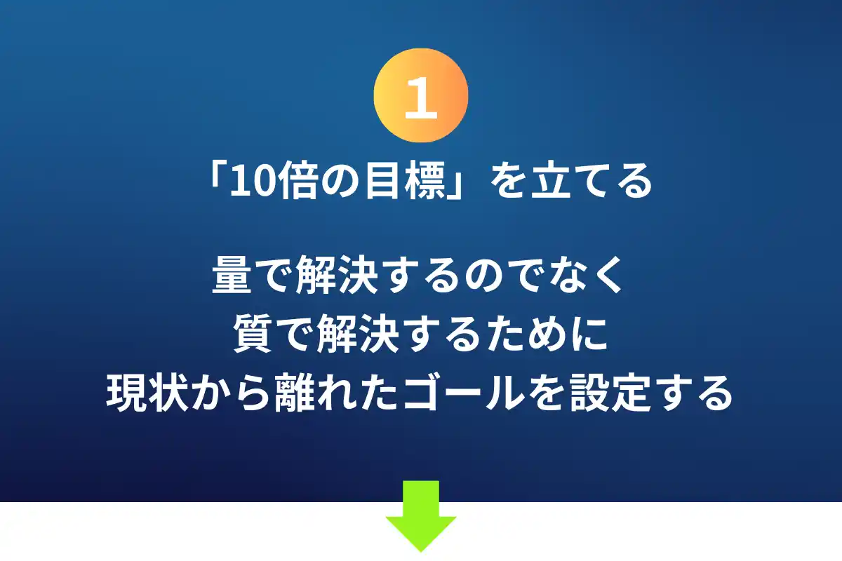 なぜなら私たちは 「10倍の成果を出すのは難しい」という 思い込みを持っているからです。 |