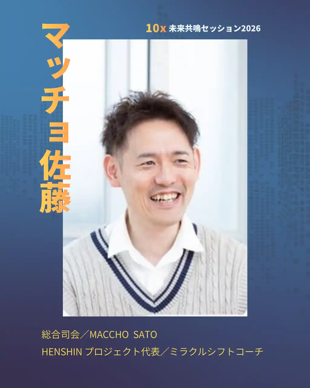 イベント名:10x 未来共鳴セッション2026 日時:2026年5月16日(土)開場12:30 開演13:00~16:00 会場:銀座 THE BAGUS PLACE(東京都中央区) |