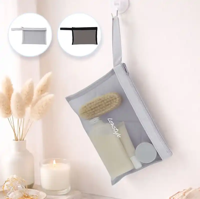 通気性に優れた素材を使用しているため、湿気の多い場所でも快適に使用可能。ビーチや温泉、旅行時のアイテム収納にぴったりです。 |