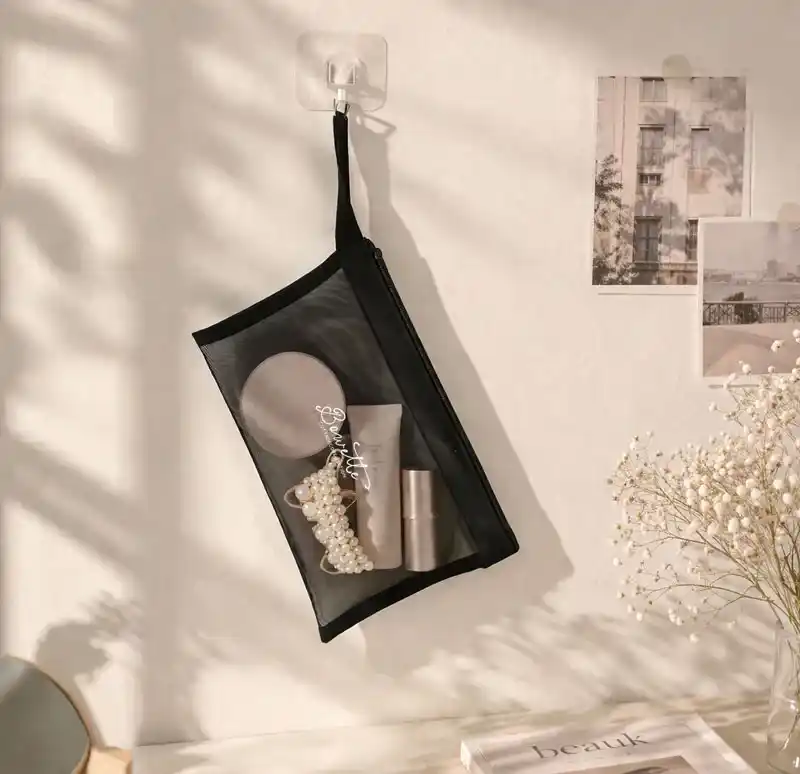 細かなメッシュ素材により中身が一目で確認可能。コスメや小物をすっきり整理でき、使い勝手の良さが魅力です。 |