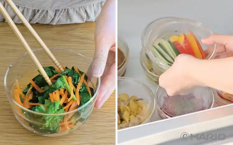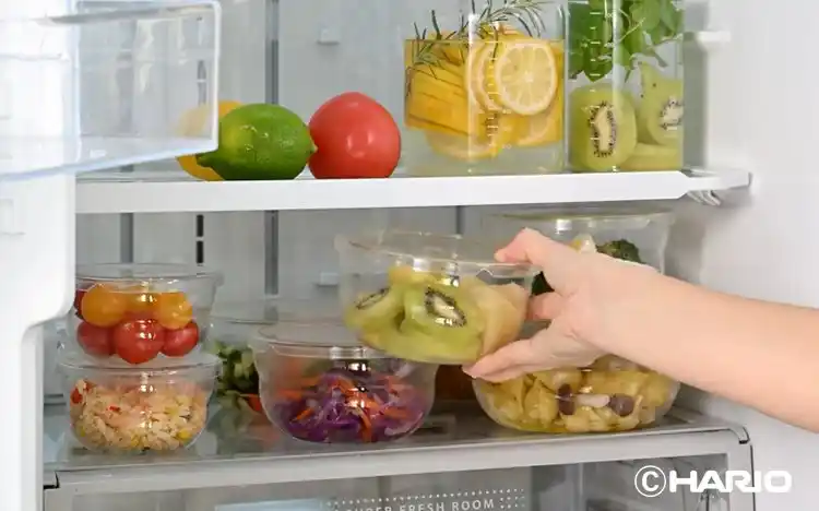本体とフタはいずれも透明設計。上からも横からも中身をひと目で確認できるため、冷蔵庫内の視認性が向上し、食材の使い忘れを防ぎます。さらに、フタも透明なため、重ねて収納した状態でも奥にある中身まで把握でき、管理のしやすさを高めます。結果として、食品ロスの削減にもつながります。 |