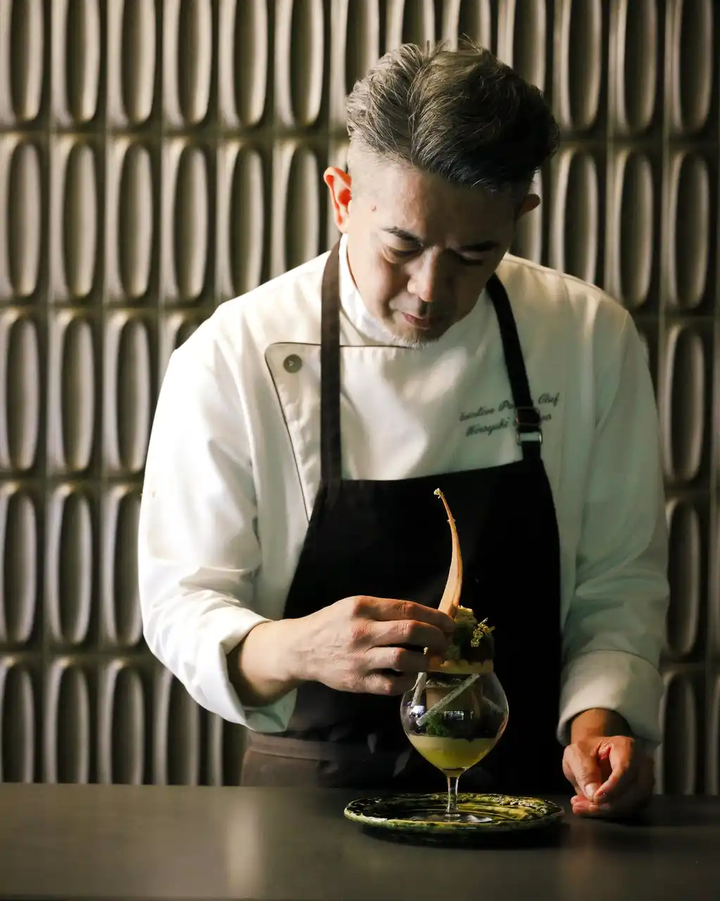 23歳でイタリアに渡り、ミシュラン2つ星のレストランなど各地のトップシェフたちのもと修行し、2015年、新時代の若き才能を発掘する国内最大級の料理人コンペティションで入賞を果たします。2017年からは京都のラグジュアリーホテルのイタリア料理店 料理長として活躍。2020年よりアマン京都の料理長を務め、2023年に総料理長に就任。「美しい自然に囲まれたアマン京都で、地産食材にこだわり、”この場所だからこそ、この料理”というシンプルでありながら奥深い食体験を届けたい」と語ります。 |
