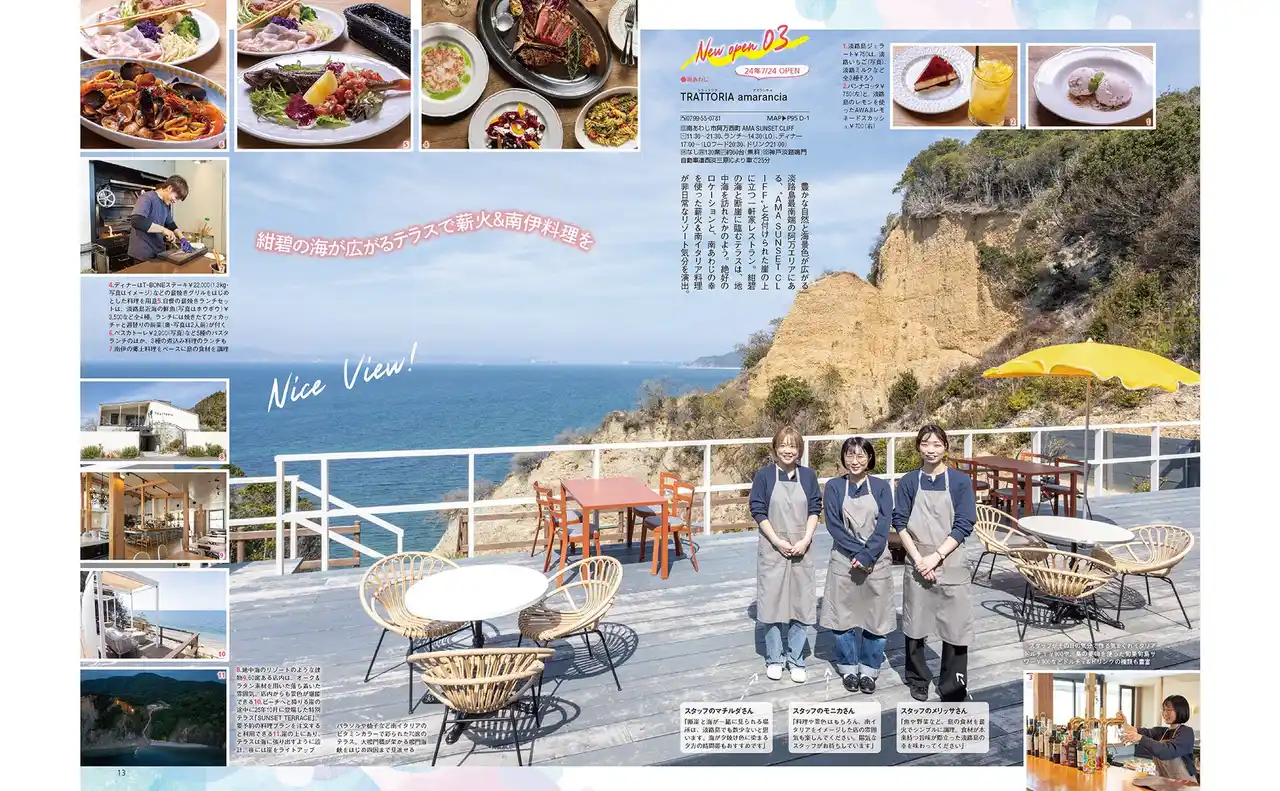 | SNSで話題のグルメや山海の幸を使った名物料理など、注目の最新店が大集合。「NEW OPENグルメ」では、カフェや雑貨の人気店・こぞら荘の新展開や、崖の上に立つ一軒家レストランamarancia(アマランチャ)など気になる店が続々登場。新スポットを余すところなく巡る「最新ドライブ」や、昨秋リニューアルした道の駅うずしおも徹底紹介します。 | |||||||||||