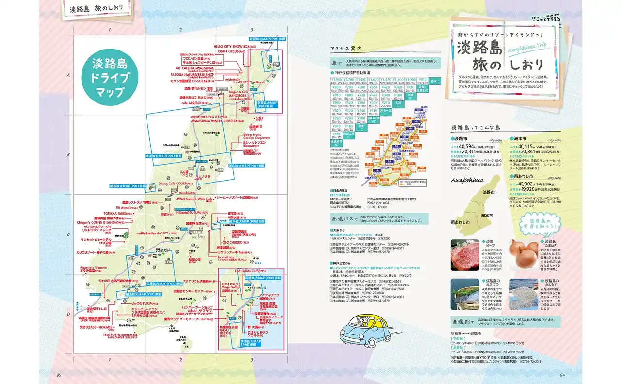 | ドライブに役立つ交通情報や掲載店が一覧できるマップが付いています。 | |||||||||||