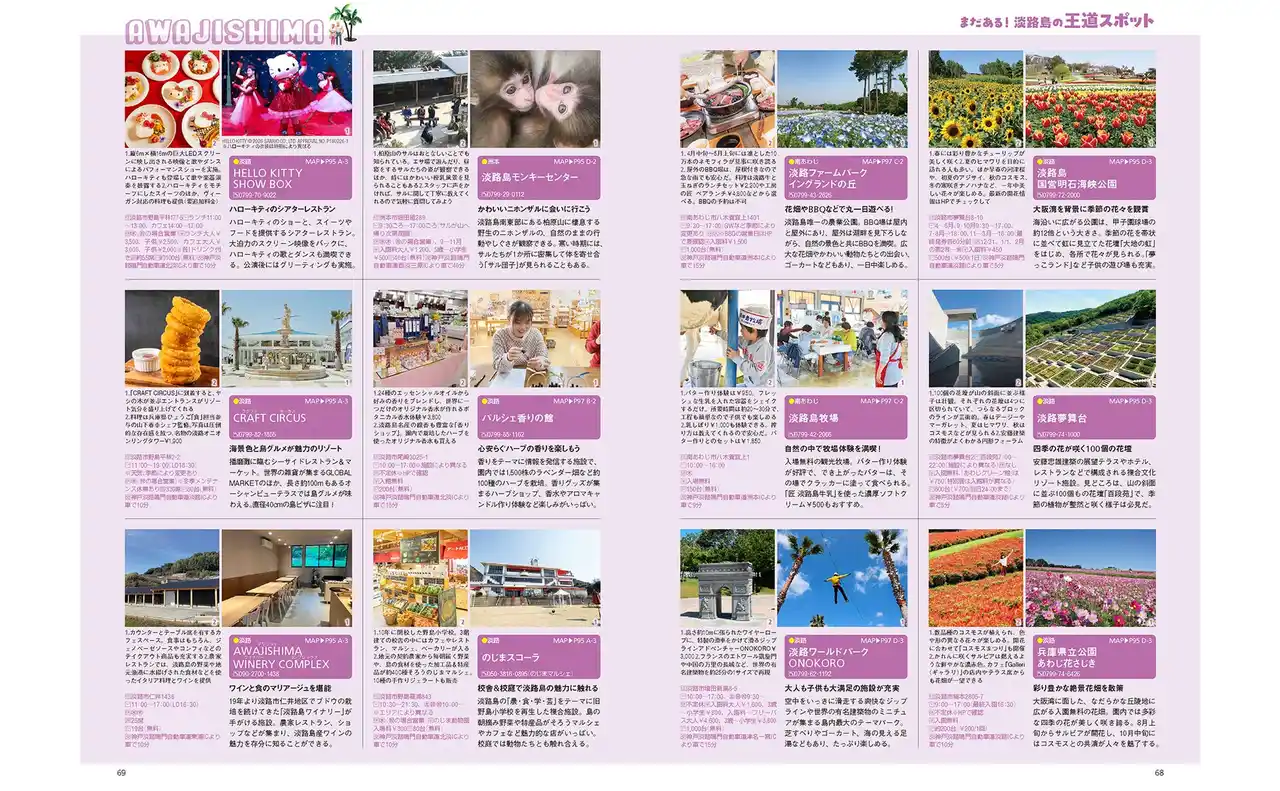 | SUPや乗馬などアクティブに遊べるアウトドアから海に臨む癒やしの温泉、花の名所など王道スポットまで、淡路島の遊びをカタログで掲載。 | |||||||||||