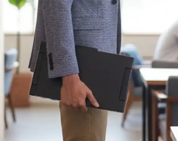 画面が狭くて作業が進まない、画面の切り替えで集中力が切れる、ビデオ会議中に相手の顔が見えないといった悩みを解決するために誕生しました。左右に広がる14インチのディスプレイは、資料閲覧、ビデオ会議、チャットツールを同時に表示するのに最適なサイズです。使用しないときは、モニターを厚さ36mmのスリムな形に折りたためます。バッグにスッと収まり、片手で軽々と持ち運べるので、オフィスでの生産性を、カフェでも、リビングでも、出張先のホテルでも再現できます。 |