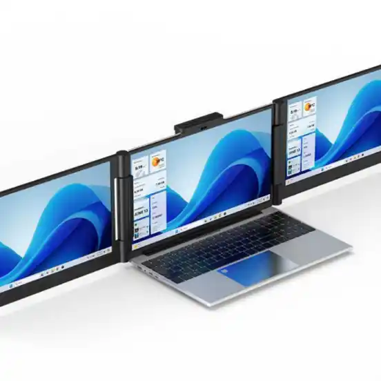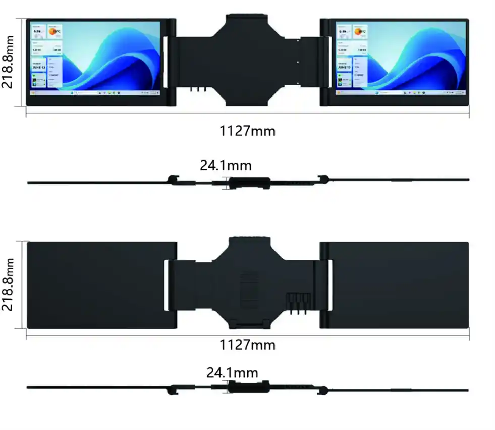 本製品は、お手持ちのノートPCに装着するだけで、左右に14インチのモニターが追加されて“トリプルディスプレイ環境”が実現できる拡張ディスプレイです。 |