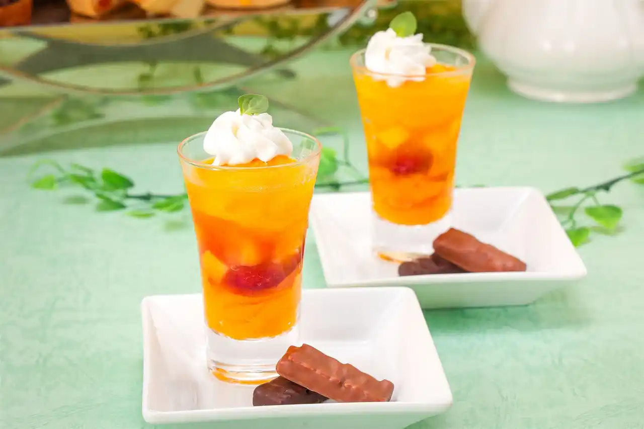 | 中段には、なめらかな舌触りの「マンゴープリン」や瑞々しい果実味を感じる「メロンゼリー」など、見た目にも涼やかなグラススイーツが彩りを添えます。あんこがアクセントとなり和テイストな「抹茶スフレフロマージュ」も新登場!王道の「ストロベリースコーン」にはたっぷりのクロテッドクリームとジャムを添えて。 | |||||||||||