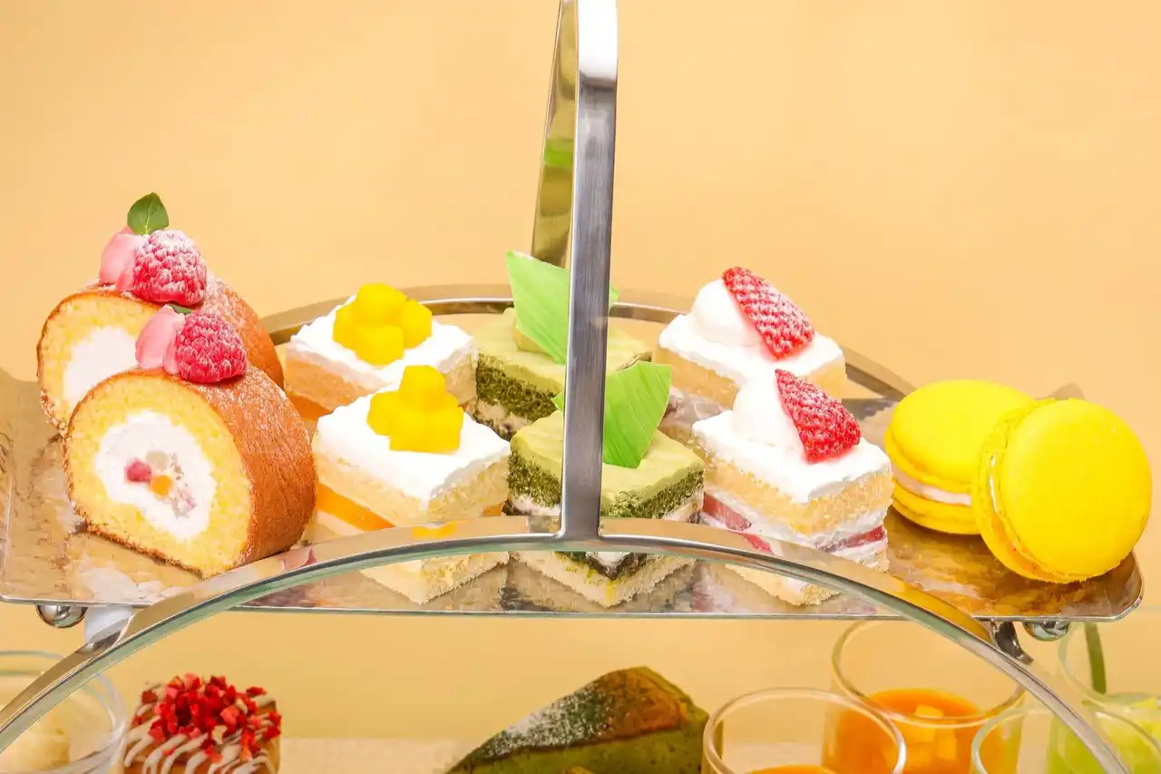 | ティースタンドの上段には、定番の「ストロベリーショートケーキ」、甘みが口いっぱいに広がる季節限定の「マンゴーショートケーキ」、和と洋の調和が織りなす濃厚な味わいの「新edo抹茶ショートケーキ」の3種ショートケーキの食べ比べが叶う夢のようなひとときを堪能していただけます。そのほか鮮やかなイエローが目を惹く「レモンマカロン」など、“いいとこ取り”のラインアップでお届けします。 | |||||||||||