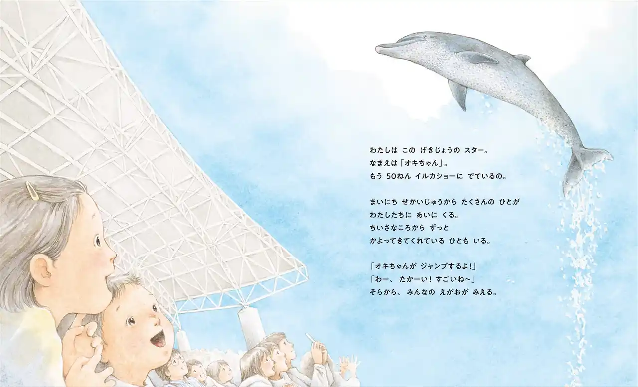 沖縄美ら海水族館で1975年から50年間、現役でショーに出演し続けたミナミバンドウイルカの「オキちゃん」。日本中、世界中の5000万人を超える観客に愛され、笑顔を届け続けてきたその生涯を描いたノンフィクション絵本です。 |