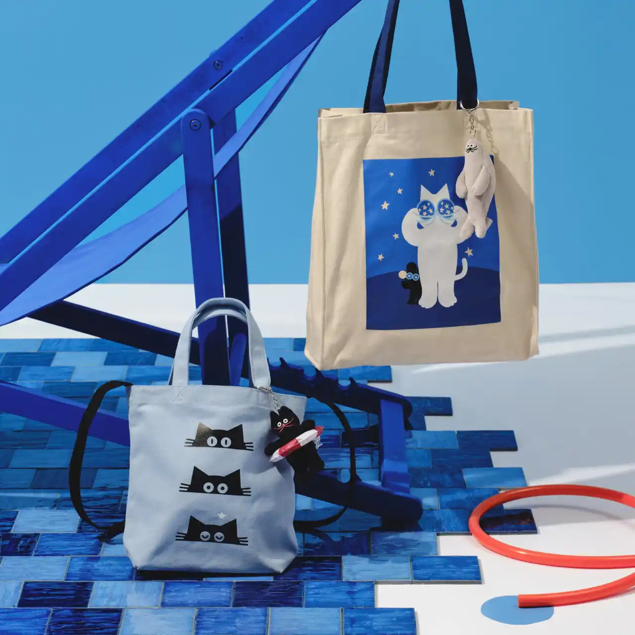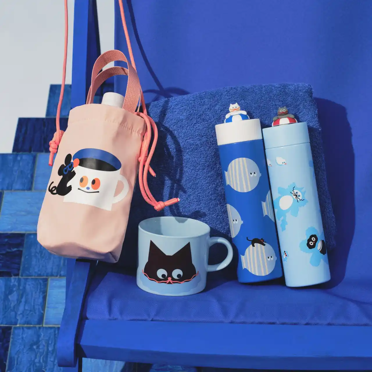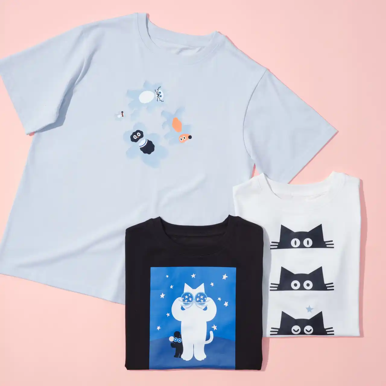 第2弾のコレクションでは、シンプルなシルエットと配色で描かれたネコやイヌたちが、水面にぷかぷかと浮かぶ姿を楽しめるアートを中心に展開します。さらに、数えきれない星々を好奇心いっぱいに双眼鏡で見つめるネコなど、夏のワクワク感や夜の静けさを感じさせるデザインも魅力です。全51種類※のアイテム展開となっており、クリアタンブラーやフード付きバスタオルなど夏の行事やイベントで活躍するアイテムが揃います。見ているだけで涼やかな気分になれるアイテムを、ぜひお手に取ってお楽しみください。