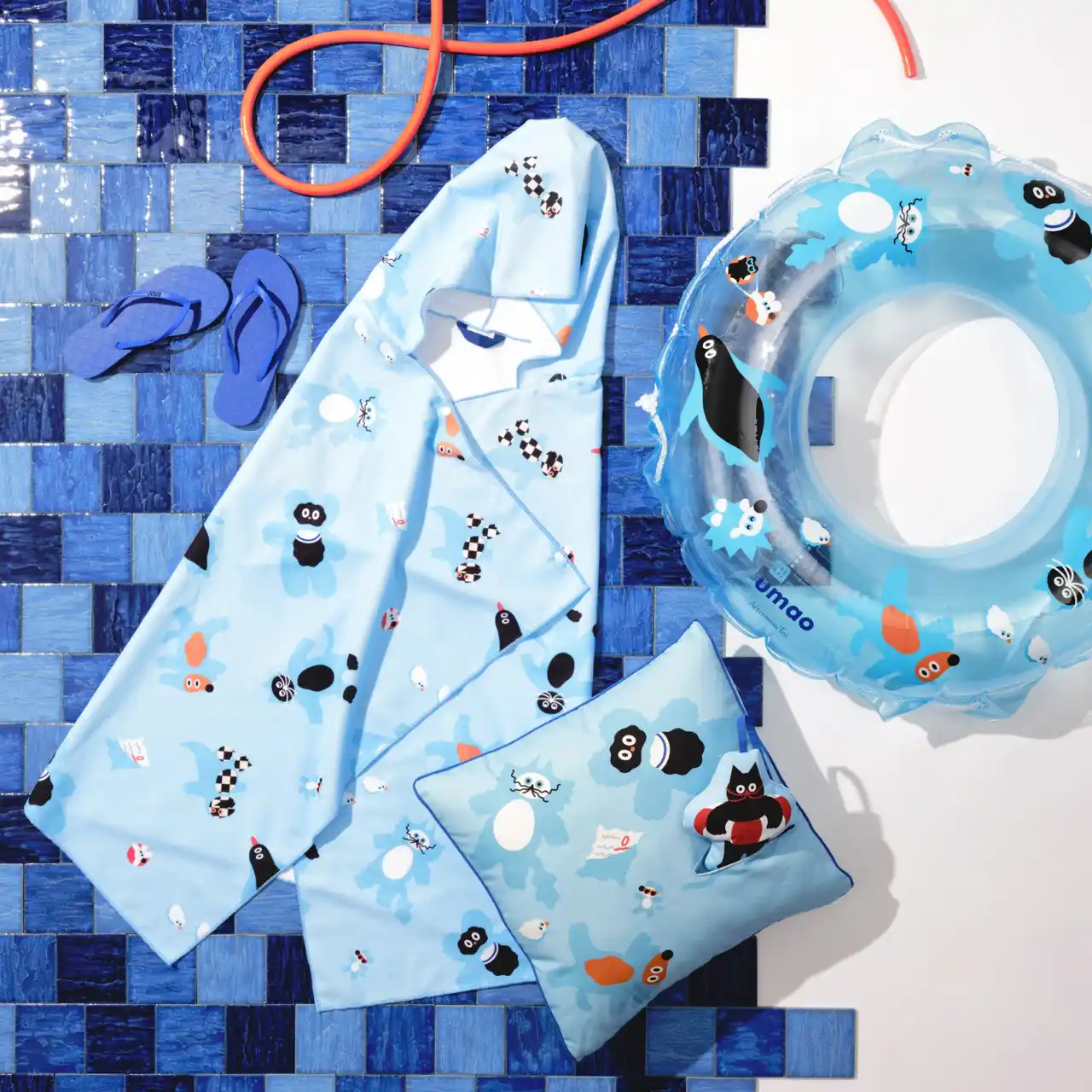 フード付きバスタオル ¥4,620、クッション ¥4,620、浮き輪 ¥3,960 |
