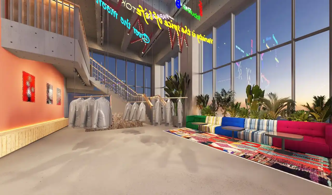 アパレルやアクセサリーを展開する物販スペースを併設 |