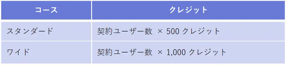「kintone AI」の正式リリースに伴い、クレジット制を導入いたします。スタンダードコースまたはワイドコースをご契約中のお客様には、追加料金なしで毎月一定のAIクレジットが付与されます。 |