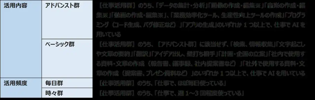 ※本リリースにおける「仕事活用群」「仕事非活用群」の定義 |