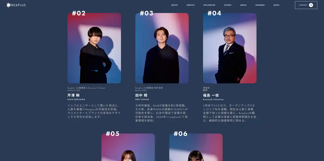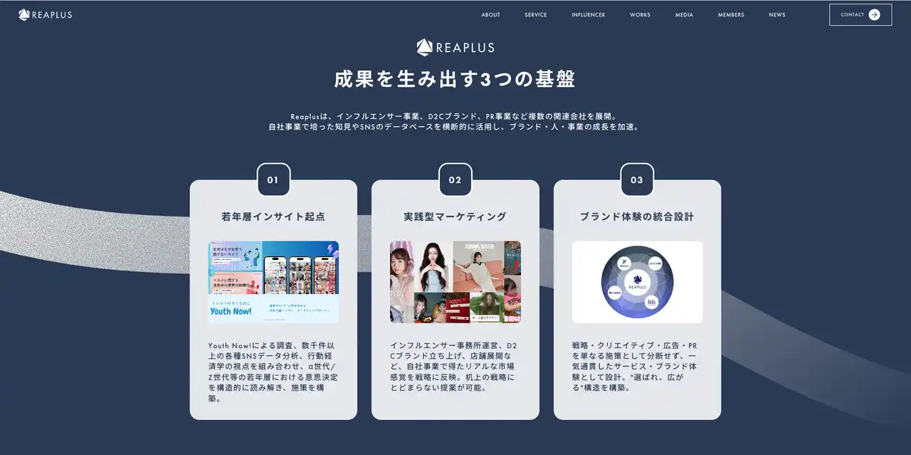 Reaplusは2023年7月の設立以降、インフルエンサーマーケティングを起点としたコミュニケーションプロデュース事業を中核に、若年層インサイトソリューション「Youth Now!」の提供、グループ会社の設立を通じたタレント支援、キャスティング、補助金支援、D2C事業など、領域を急速に拡大してまいりました。 |