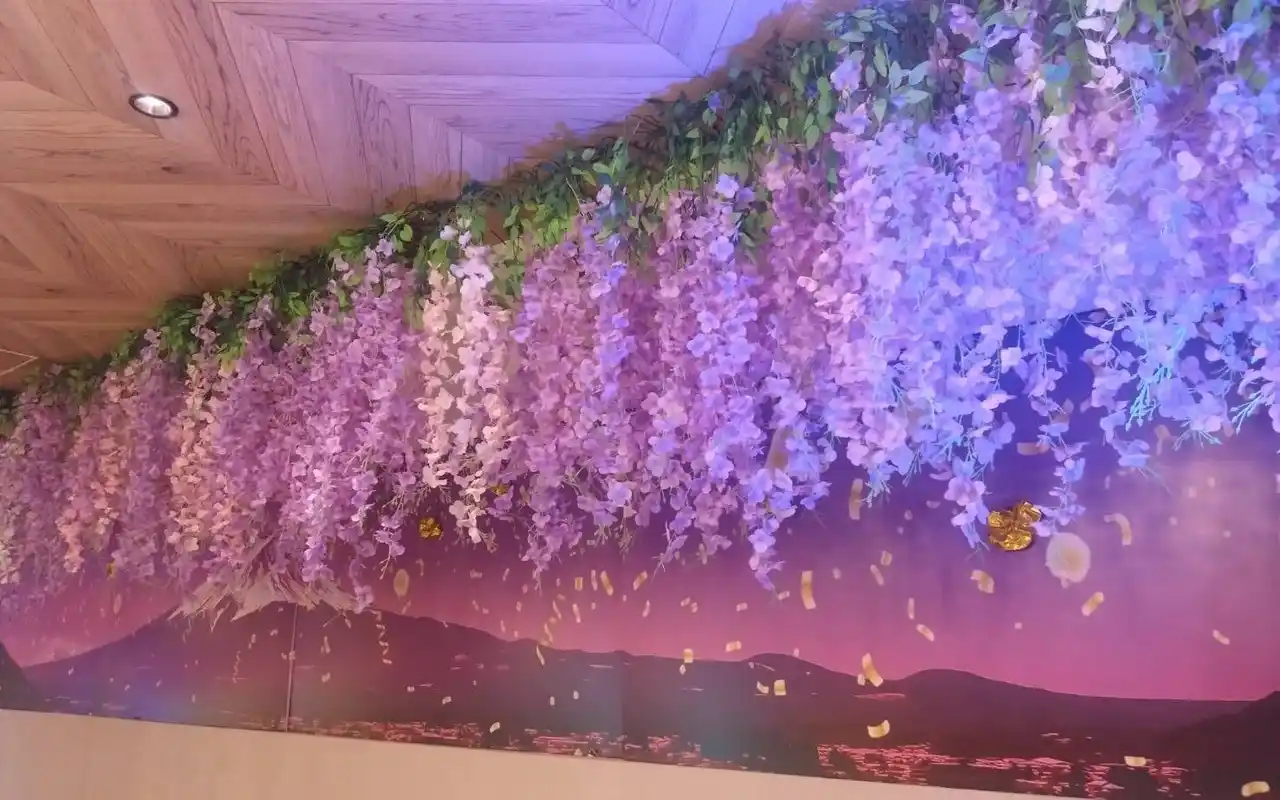 店内は藤の花で装飾され、視覚的な美しさだけでなく、季節の移ろいを体感できる空間となっています。さらに、藤色をテーマにしたデザートやドリンクを展開し、味覚・視覚の両面から季節を感じながら、心を整える時間をお過ごしいただけます。 |