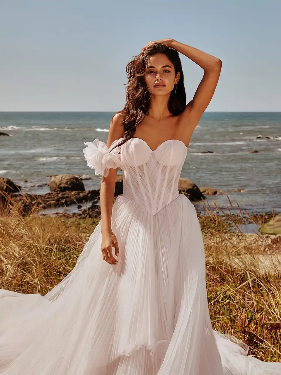 デザイナー Galia Lahav(ガリア・ラハヴ)が、ハンドメイドのレースブランドを立ち上げたことから生まれたオートクチュールメゾン。 上質なファブリックとイリュージョンバックの美しさ、まるでジュエリーを身に纏っているかのような繊細で豪華な刺繍が特徴。 |