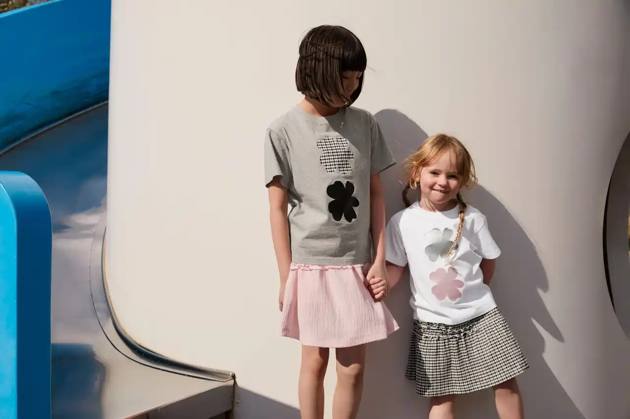 以前から子ども服にも興味を持っていたと語るセシリー・バンセン氏。今回初めて手がけるガールズラインは、大人とのペアリングスタイルも楽しめるドレスやTシャツ、スコートが揃います。スコートはかわいらしいデザインながらもウエスト調節ができ、両サイドのポケットなど快適な着心地も備えました。 |