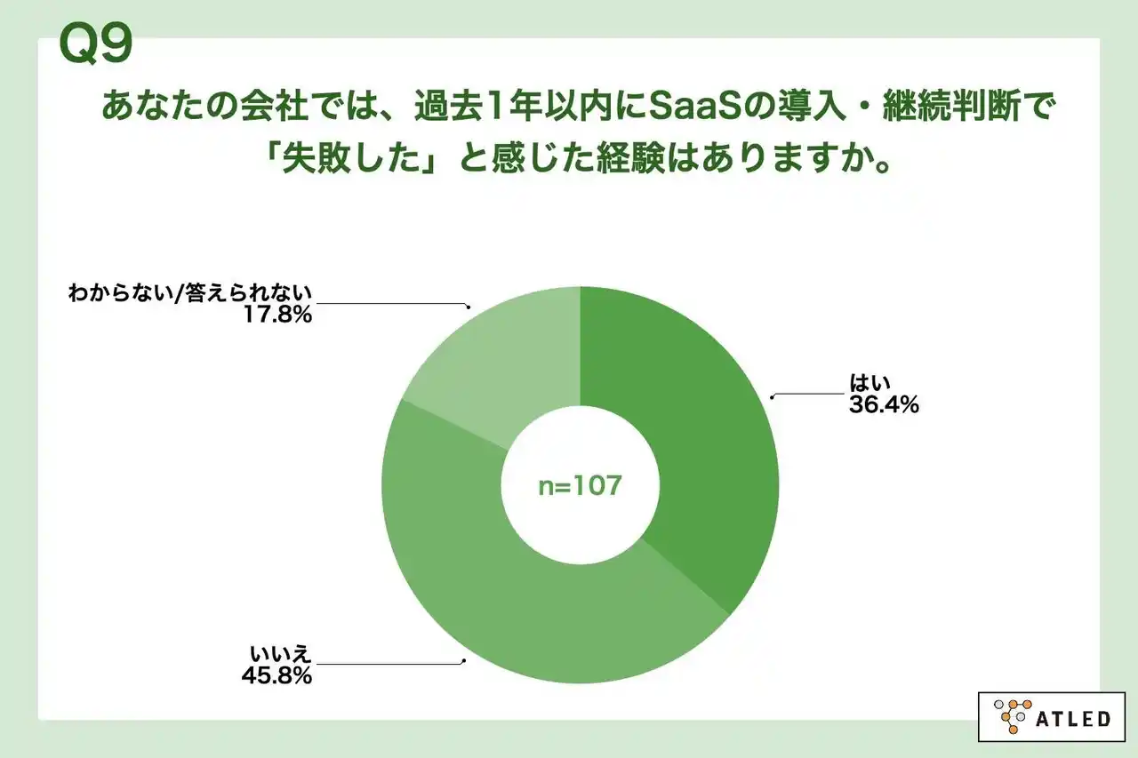「Q9. あなたの会社では、過去1年以内にSaaSの導入・継続判断で「失敗した」と感じた経験はありますか。」