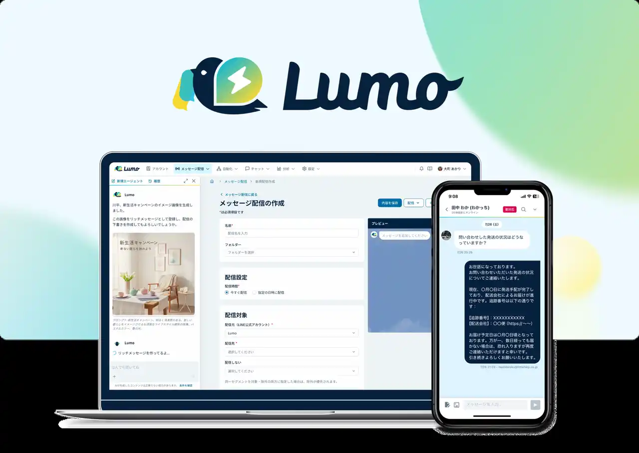 | Lumo(ルモ)は顧客データとLINEをつなぐ、AIネイティブのLINE公式アカウント向けマーケティングツールです。AIエージェントが配信内容やデータ分析、施策を提案します。 | |||