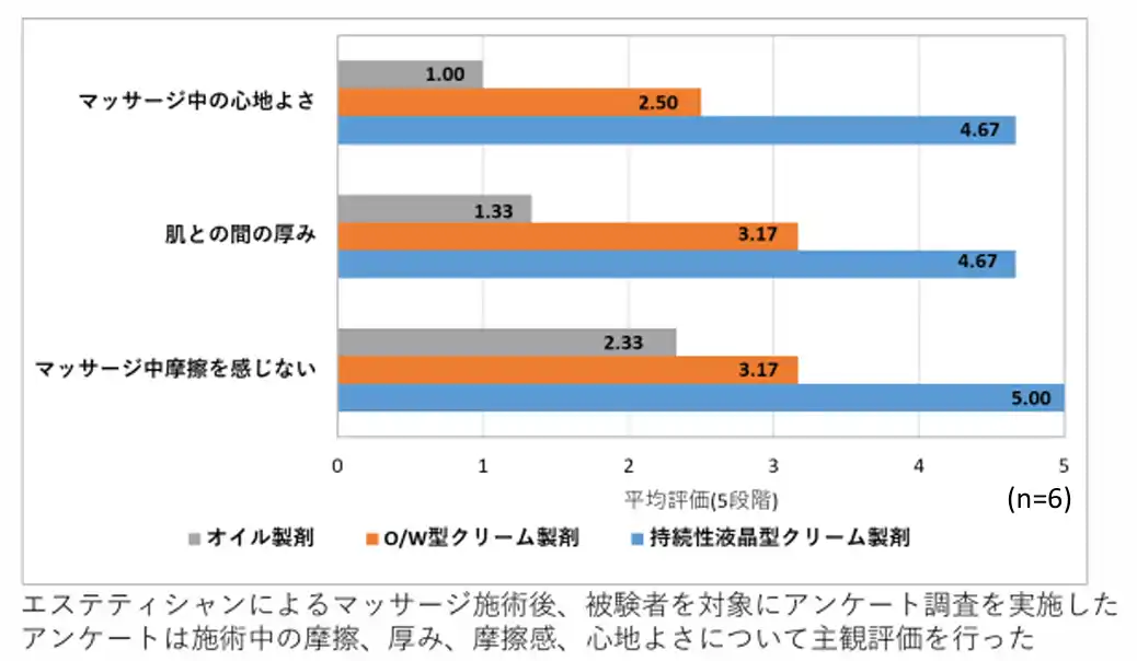 | マッサージ中の使用感評価においても、摩擦の少なさや厚みによる心地よさが支持され、機能性と感性価値の両立が確認されました。 | |||