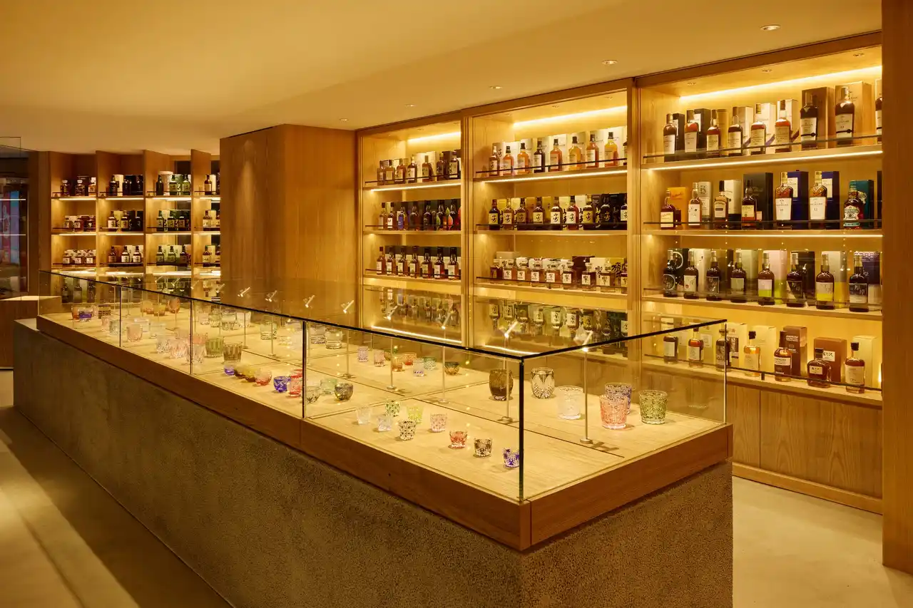 | 本大阪旗艦店は、これまでで最も広い売場面積となり、希少な国産ウイスキーや日本酒、老舗工房や新進気鋭の作家による酒器など、日本のものづくりが生み出す逸品を、ギャラリーのような店内でゆったりとご覧いただけます。 | |||||||||||||