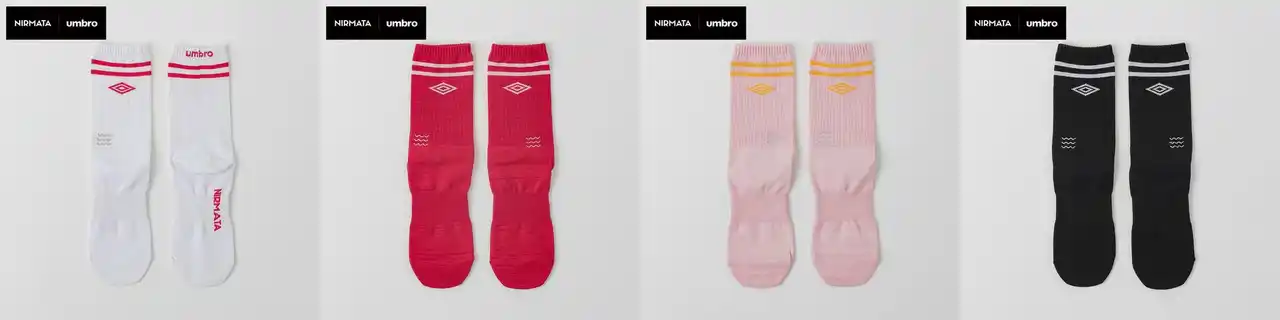 イオンリテールは4月23日(木)より、「イオン」「イオンスタイル」約210店舗※1)と「イオンスタイルオンライン」にて、イオンオリジナルブランド「NIRMATA(以下、ニルマータ)」からイギリスで創業したフットボールブランド「UMBRO」とのコラボソックス計48種類※2)を販売します。 |