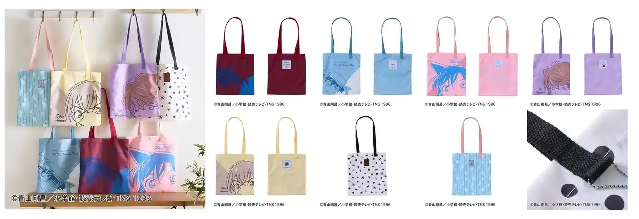タイプ/全7タイプ(江戸川コナン、怪盗キッド、毛利蘭、灰原哀、安室透、コナンドット、キッドストライプ) サイズ/約37×40cm、持ち手の立ち上がり寸法:約35cm |