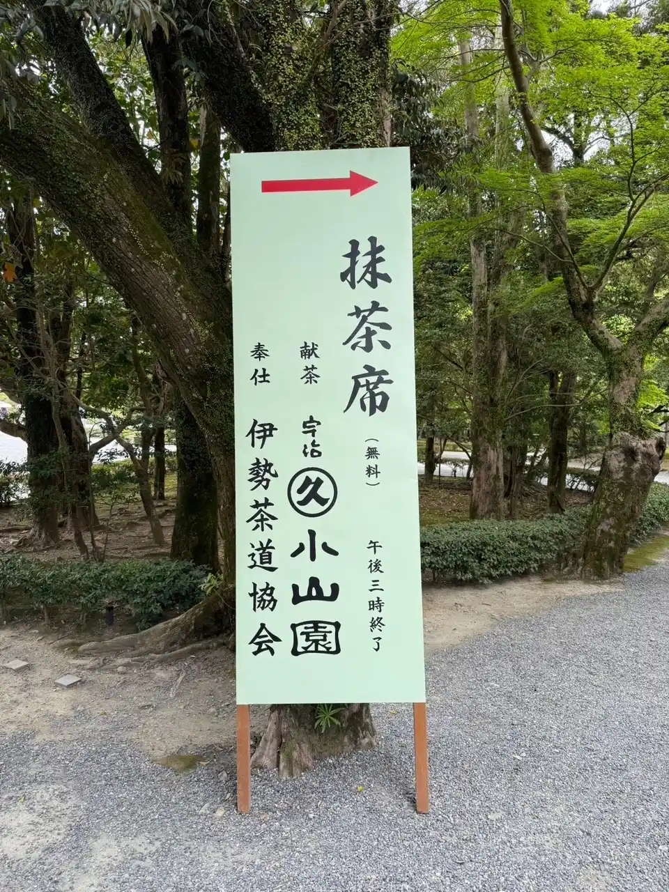 場所:伊勢神宮 内宮境内 参集殿(三重県伊勢市。立て看板が目印です) |