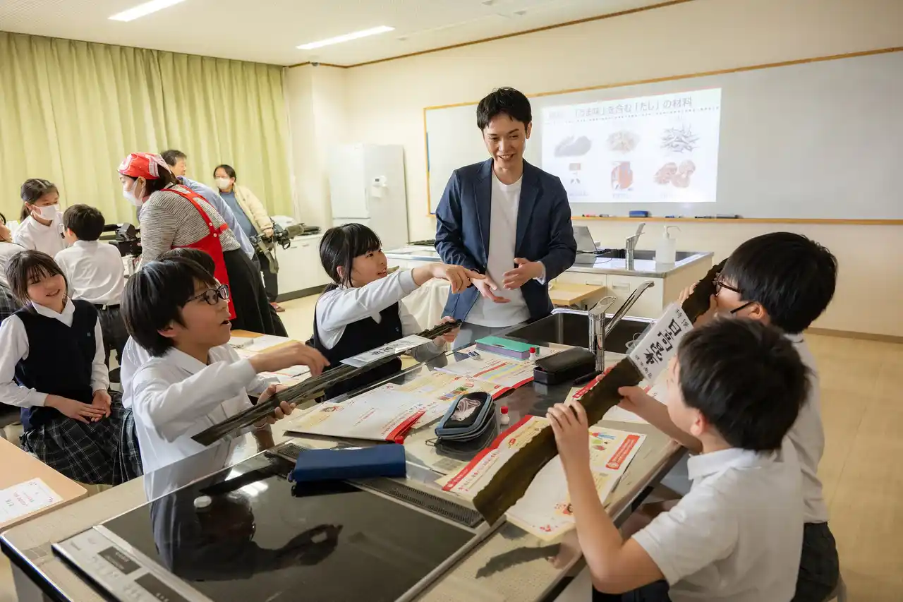 この体験を通して、うま味を上手に使えば塩分を増やさなくても料理のおいしさを引き出せることや、「umami」が世界共通語として使われていることを学びました。さらに、五大栄養素やバランスの良い食事の重要性、トップアスリートへの栄養サポート、だしの種類などについても紹介され、児童たちは健康な体づくりと栄養リテラシーへの理解を深めました。 |