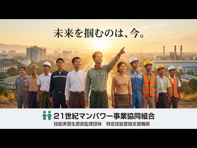 | 21世紀マンパワー事業協同組合(東京都中央区、代表理事:窪内 保)は、外国人技能実習制度が2027年4月に育成就労制度へ移行することに伴い、現行制度における受け入れ手続きの申し込みは2026年度中が実質的な最終目安となることをお知らせします。入国まで通常6~12ヶ月を要することから、2026年度内に申し込みを行った場合が現行制度を活用できる最後のタイミングとなります。当組合ではミャンマー・ベトナム・インドネシアの3カ国について、1,000名以上の受け入れ実績と8名の通訳スタッフ(内、ミャンマー人5人)によるサポート体制で、引き続き受け入れ企業の皆様を支援いたします。 | ||||||||||||||||||||||||||||