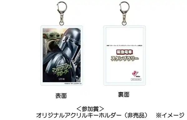 〈3〉ゴールポイント(TOHOシネマズ梅田)ですべてのスタンプを押したスタンプ台紙をご提示いただいた方に、参加賞の映画『スター・ウォーズ/マンダロリアン・アンド・グローグー』オリジナルアクリルキーホルダー(非売品)をプレゼントします。 |
