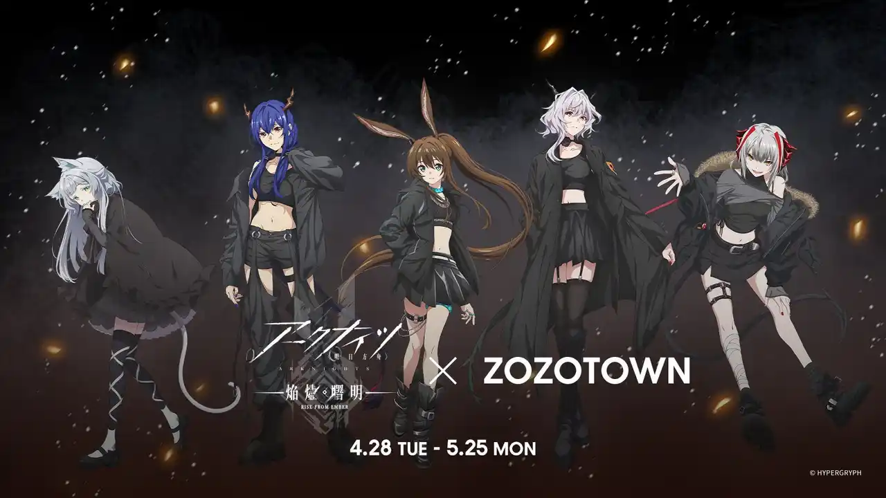 TVアニメ「アークナイツ【焔燼曙明/RISE FROM EMBER】」とZOZOTOWNがコラボレーションしたアイテムを、4月28日(火)よりZOZOTOWN限定で受注販売します。 |