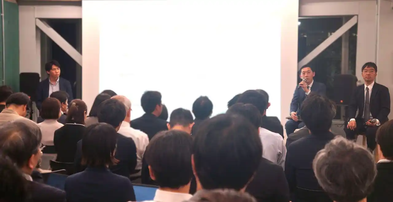 イベントの様子(左から山田仁太(PoliPoli COO)、三浦一央 参事官、大瀧洋 参事官) |