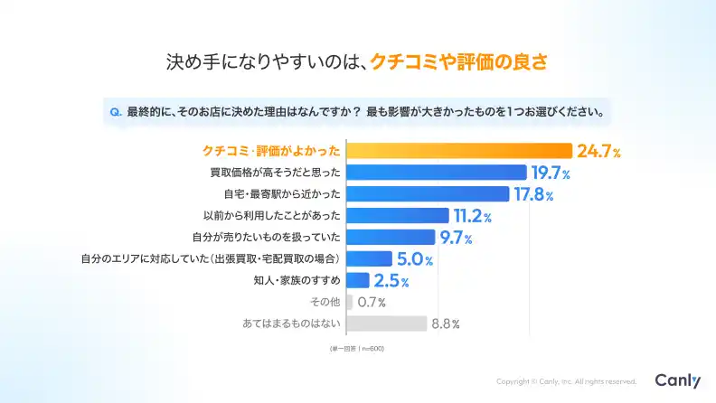 | さらに、いざ「お店で売ろう」と決めた後も、どこのお店で売ろうか複数のお店を比較して決めているのです。 | |||||||||||