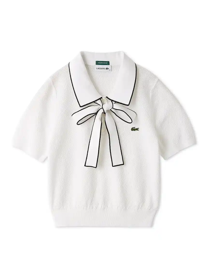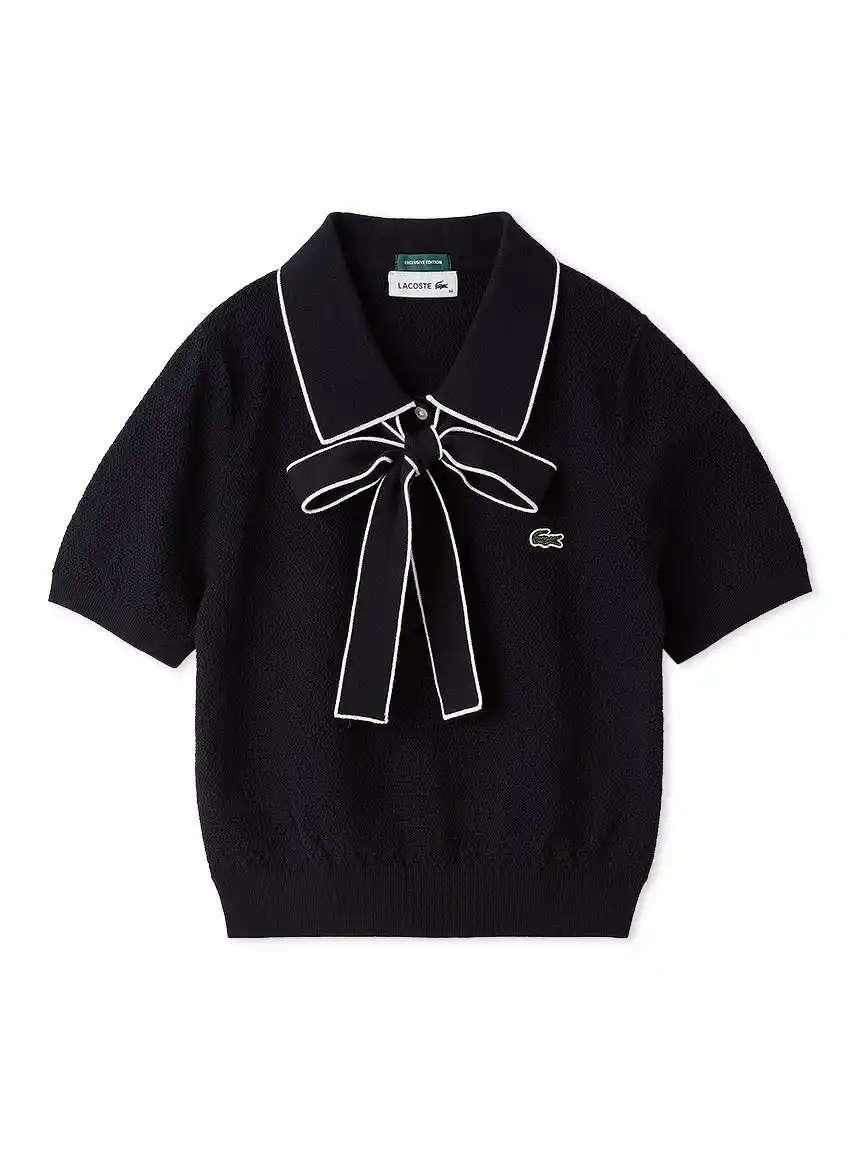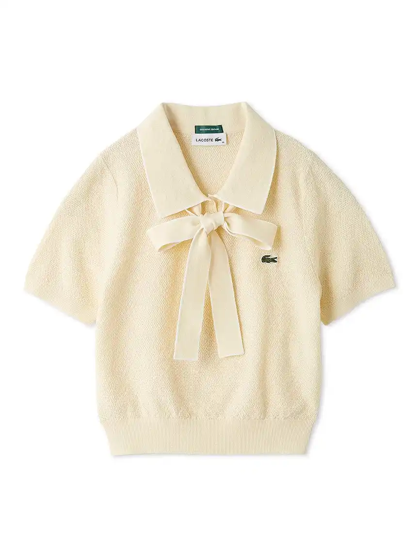 【繊細なリボンが目を引く主役級のポロニットプルオーバー】 |