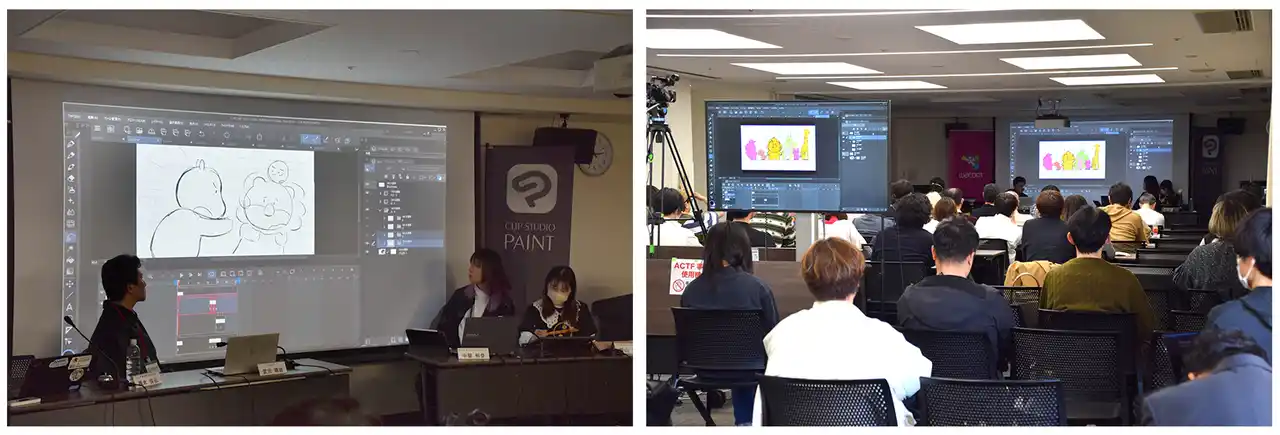 セルシスは、アニメーションのデジタル制作技術に関するシンポジウム「ACTF2026 in TAAF」を、3月14日(土)・15日(日)にJAniCA・ワコムと共催し、セミナーや「CLIP STUDIO PAINT Ver.5.0」の体験展示などを行いました。セミナーでは、セルシスとマーザ・アニメーションプラネット株式会社による、「たべっ子どうぶつ THE MOVIE」を作例とした「CLIP STUDIO PAINT」の活用事例を紹介しました。 |