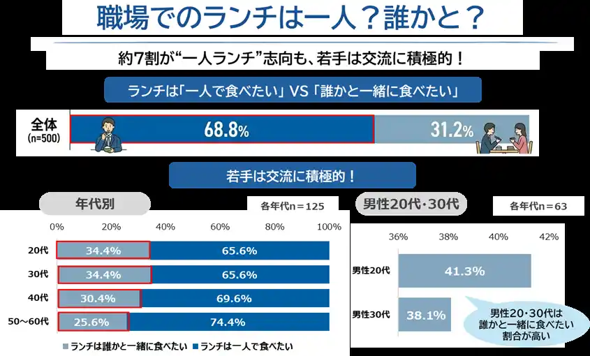 ■約7割が“一人ランチ”志向も、若手は交流に積極的!職場ランチの“誘う・誘われる”に世代差 |