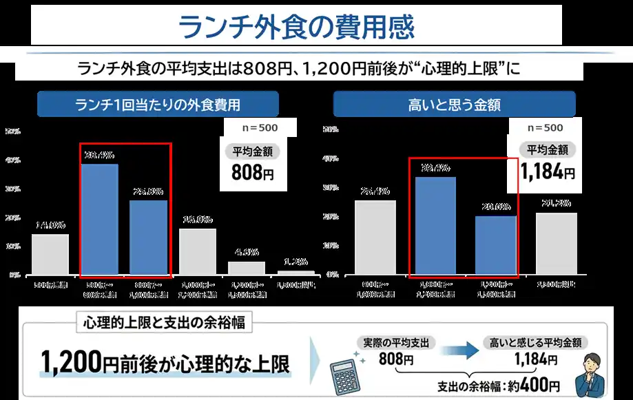 POINT2. ランチ外食の平均支出は808円、1,200円前後が“心理的上限”に |