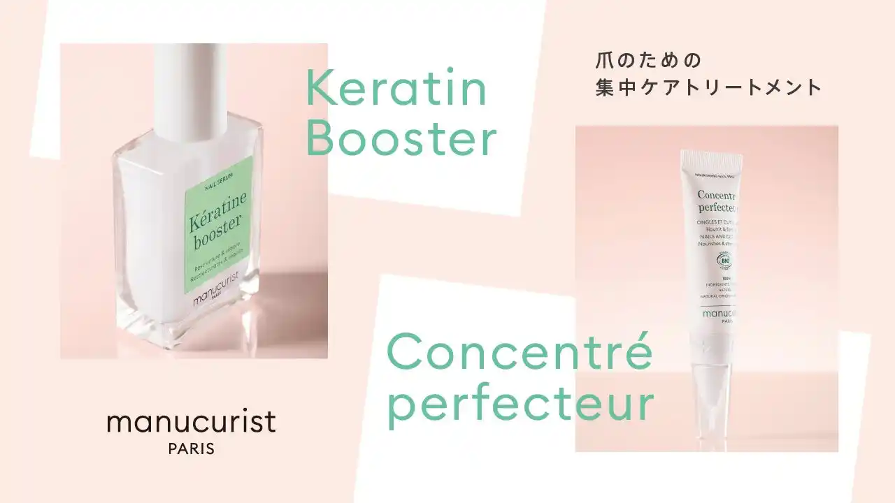 | ダメージ(乾燥や摩擦)が気になる爪を集中ケアするネイルトリートメント「ケラチンブースター」、外出先でも手軽にケアできるネイル用美容液「コンセントレートパーフェクター」。 | |||||||||||||||||||
