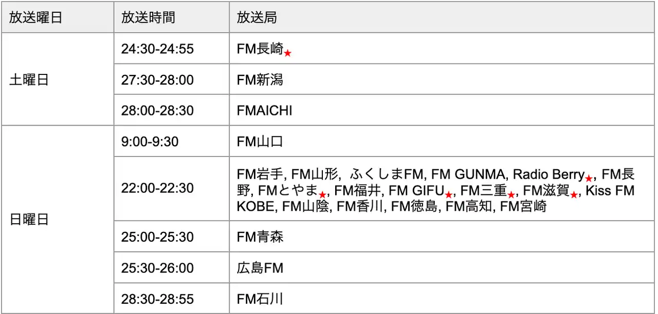 【番組ネット局/OA時間】★は2026年4月より新規追加、時間変更のあった放送局になります |