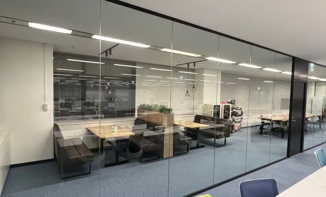 | オフィス内には、壁を極力排除したガラス張りのカフェスペースを設置。開放的な空間は、チーム内のカジュアルなコミュニケーションを誘発し、新しいアイデアが生まれる場として活用を期待しております。 | |||||||||||