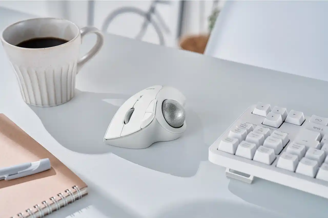 テレワークで活用していますが、無線式かつトラックボール式のため、邪魔なコードもマウスパッドも必要なく、場所を選ばないところが気に入っています。海外出張でも活躍します。 |