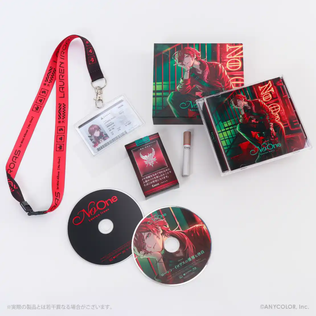 | 「No One」=「一つの顔ではない」をコンセプトに、ローレン・イロアスの多面的な世界と表情を描いた全5曲を収録。初回生産限定盤Aには、タバコ風ボックスメモ帳、警備部隊ライセンス風カード、ネックストラップ(ケース付)と、ロケ企画『ローレン・イロアスの優雅な休日』を収録した特典Blu-rayを同梱。初回生産限定盤Bにはカバー3曲を収録した特典CDを。さらに3形態共通封入特典(初回生産分)として、ローレン・イロアス 1st LIVE “FACE” チケット先行抽選シリアルコードを封入。 | |||||||||