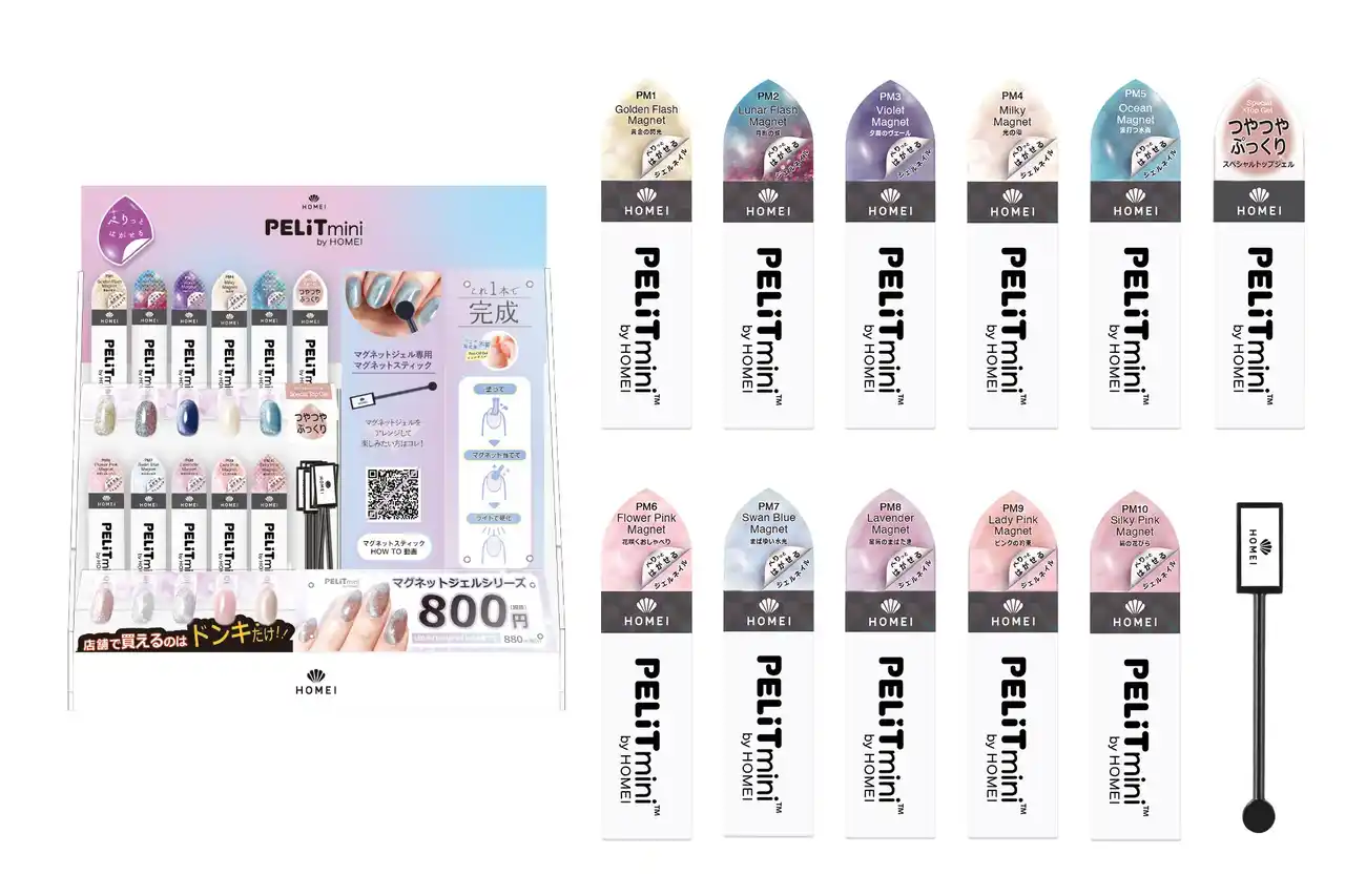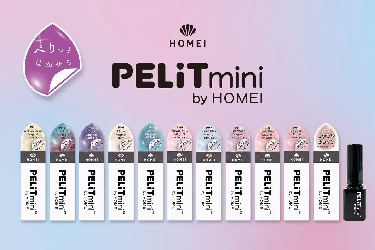 ぺりっとはがせるジェルネイル「HOMEI ウィークリージェル」で大人気を誇るマグネットジェルシリーズより、待望のミニサイズ「PELiT mini by HOMEI(ペリット ミニ バイ ホーメイ)」が登場。 |