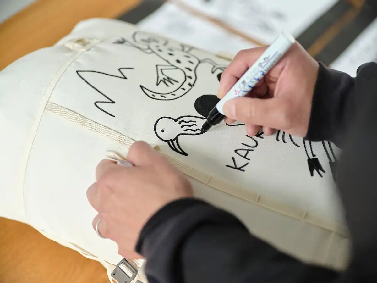 シンプルでロングライフ、装備や用途に応じて使い方をアレンジできるバックパック「Kete」。その特性を活かし、プロダクトをキャンバスとして、アートの表現を重ねました。 |