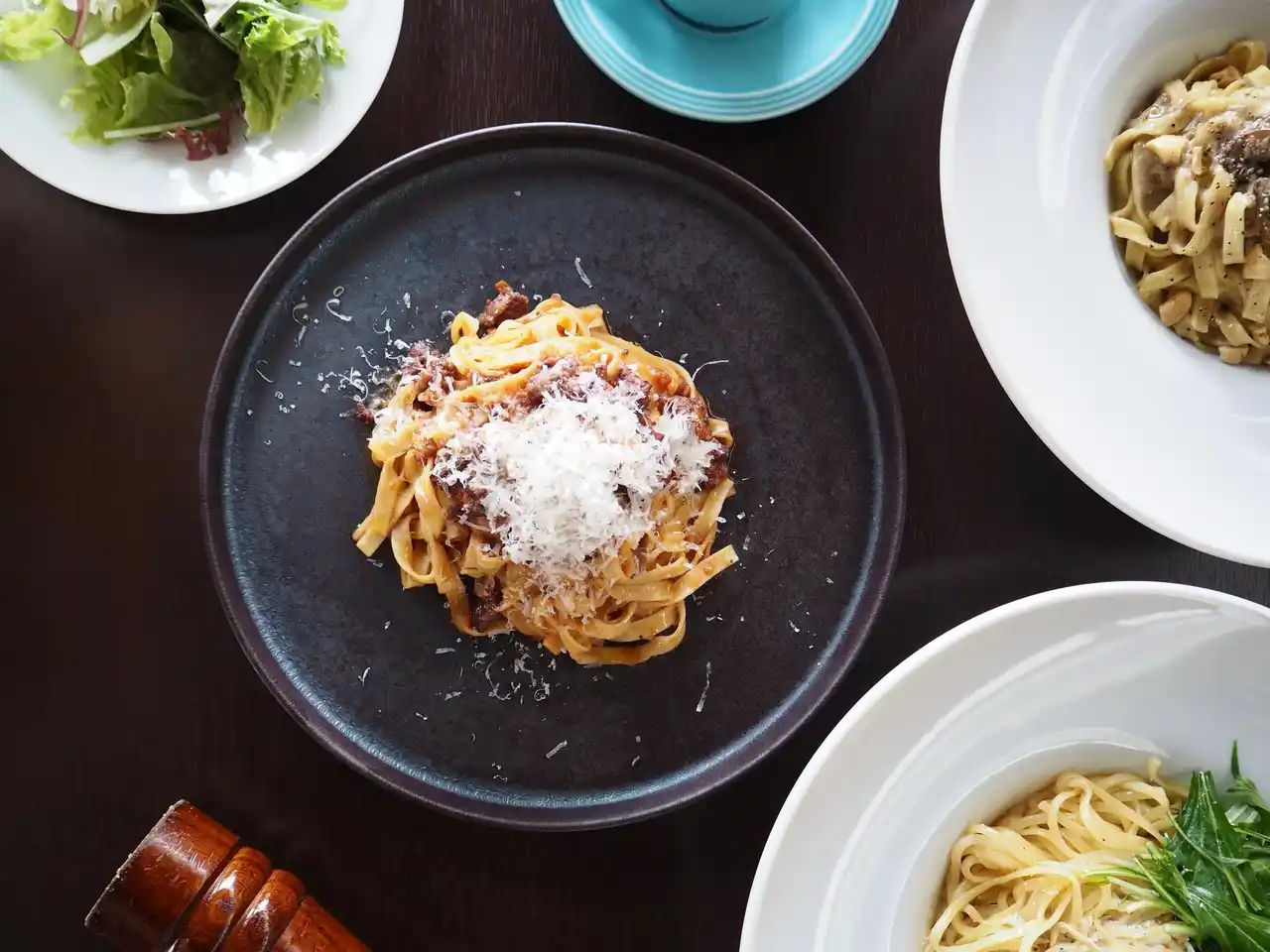 メイン料理には、サラダ・ドリンクがセットになったパスタランチをご用意。 |