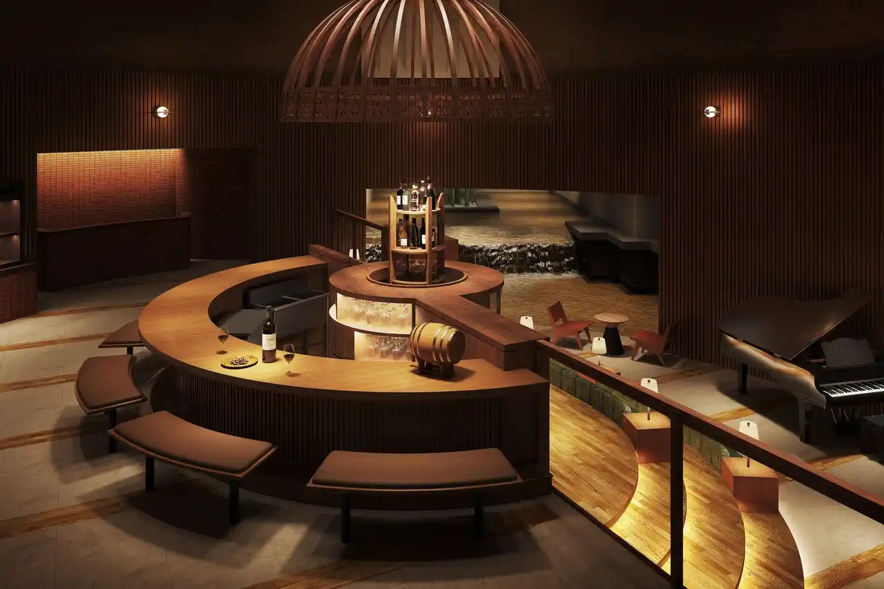 | 「松本エレガンテ」な夜は、ディナーで終わることはありません。客室でもダイニングでもない、界 松本が提案する新たなアクセントが、第三の居場所としての「ワインバー」です。 ここでは、信州が誇る名醸造所のワインが並び、味わいや会話を楽しみながら次の一杯を選ぶ贅沢な時間が流れます。館内を包み込む音楽の余韻に浸りながら、あえて客室へ戻る前に立ち寄る。そんな自由で気ままなひとときが、スモールラグジュアリーな旅にさらなる彩りを添えます。 | |||||||||