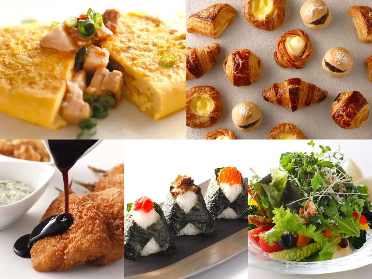 シェフが目の前で作るホテルオリジナルの「竹岡式チャーシューオムレツ」をはじめ、鰻やいくらなどの厳選具材を千葉県産の海苔で丁寧に握る「おにぎり」、サクサクふんわり食感が絶品の「アジフライ」など、ここでしか味わえない和・洋・中バラエティ豊かな絶品メニューが勢ぞろい。美食でお腹を満たし、1日を元気にスタートしていただけます。 |
